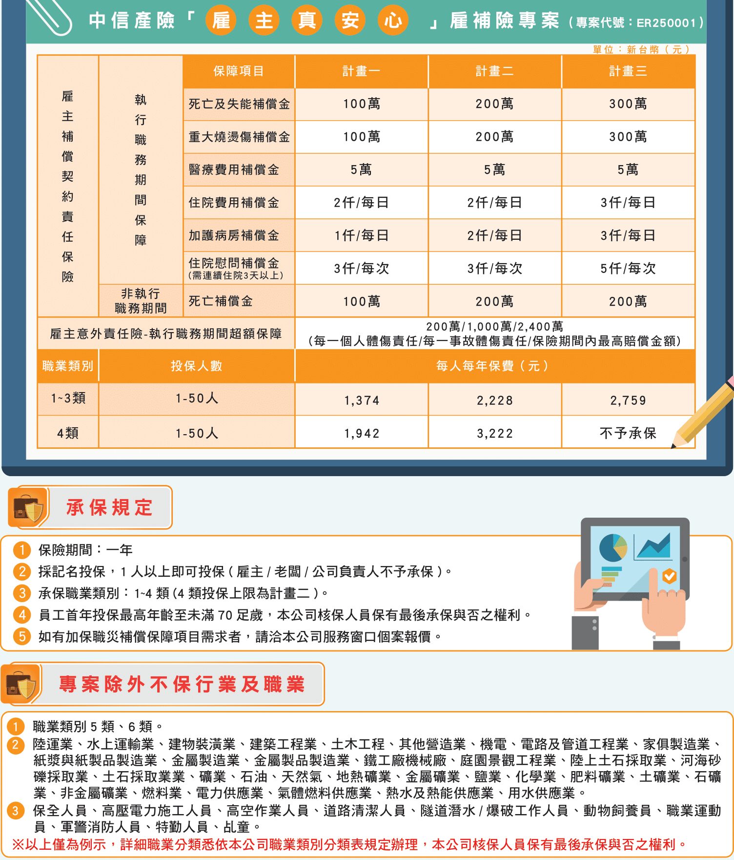 - 推薦商品(不含團傷):中國信託產險雇主真安心、富邦產物謝老闆PLUS二代