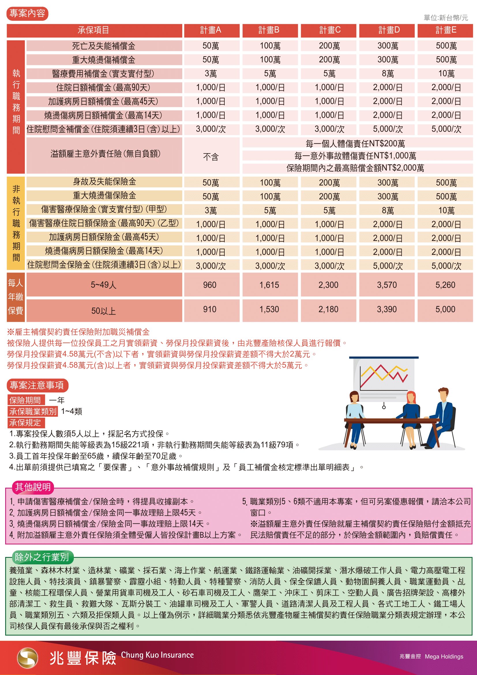 兆豐產物 雇主補償契約責任保險 (一般行業)