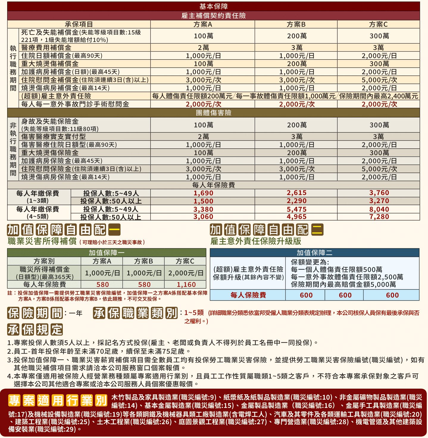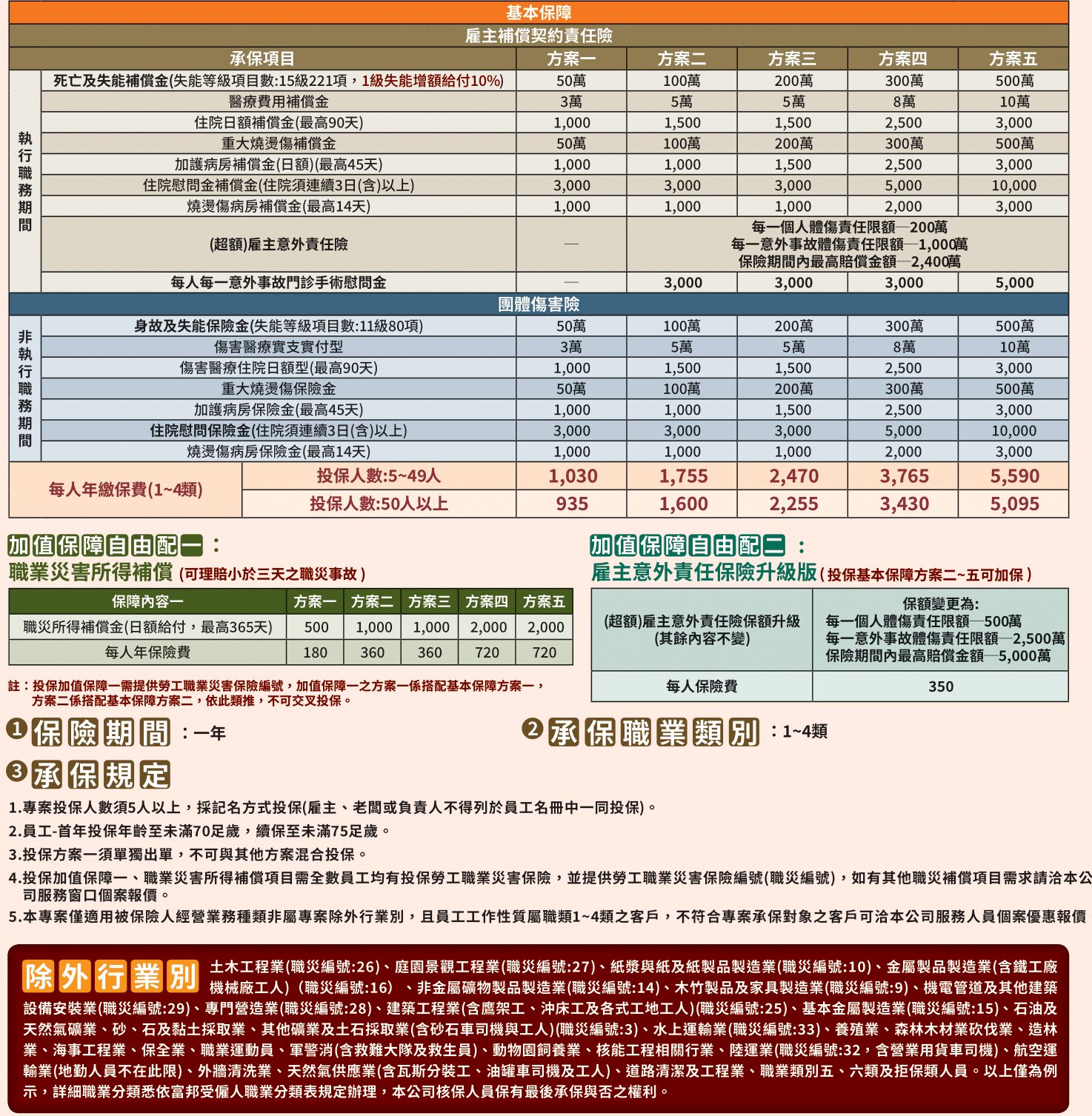 註:新光產物招財進寶2.0方案內含雇主責任險,並非額外加購,1~10人保費都相同。