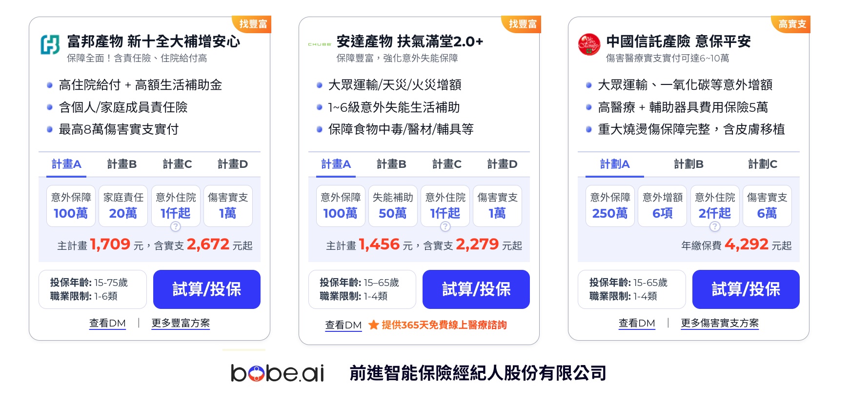 這些市售方案提供較豐富的保障!若您追求保障豐富,推薦: